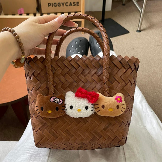 HelloKitty Handmade Faux Wicker Eco-Friendly Bag Tote