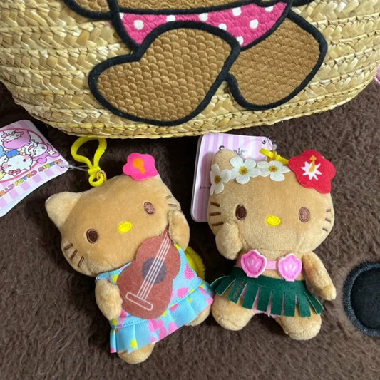 Hawaiian Tan Kitty Hula Skirt Plush Charm - Cute Tropical Accessory