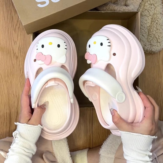HelloKitty Cute Crocs with Thick Soles - Stylish & Comfortable Heel-Raising Hole Shoes